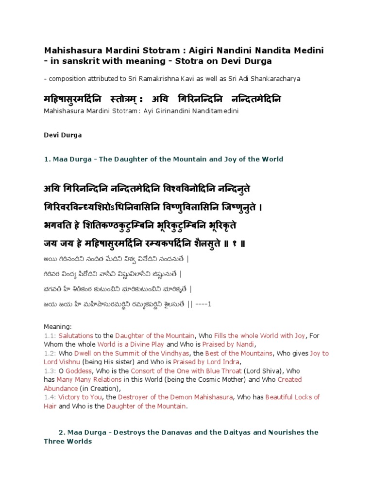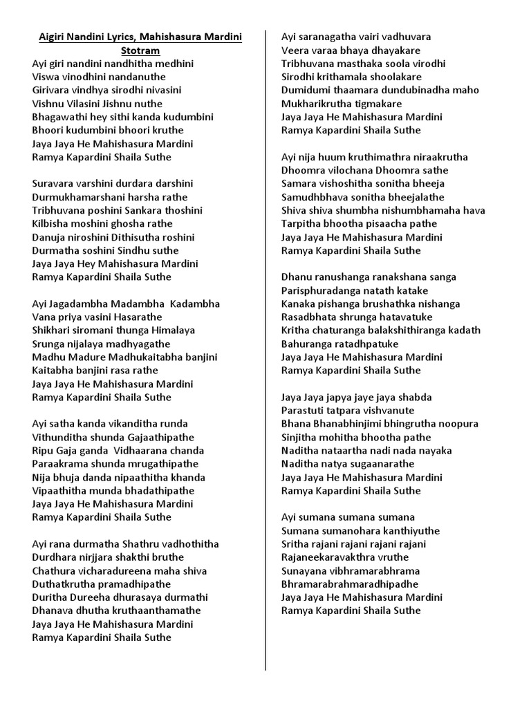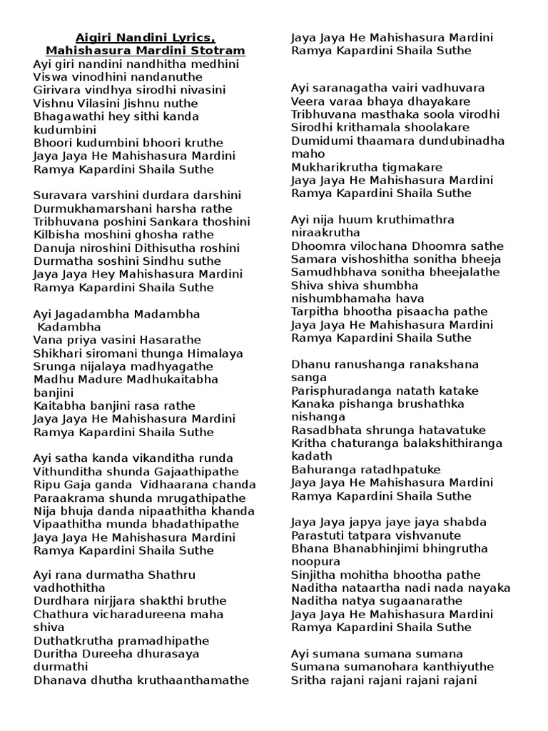 Aigiri Nandini Song Lyrics In English - The song aigiri nandini praises different form of goddess durga and gives you peace.
