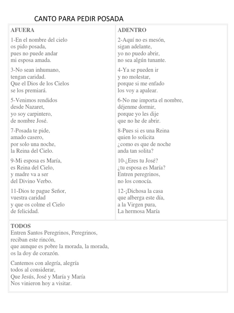 Canto Para Pedir Posada Letra Adentro Y Afuera Pdf - Ya se puden ir y no molestar porque si me enfado os voy a apalear.