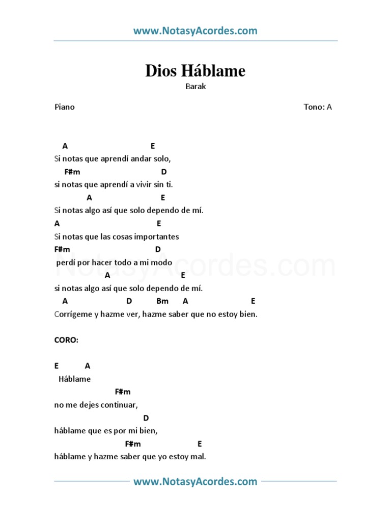 Dios Hablame Barak Letra - Aprenda a tocar essa música usando as cifras, tablaturas e versão simplificada com o cifras.