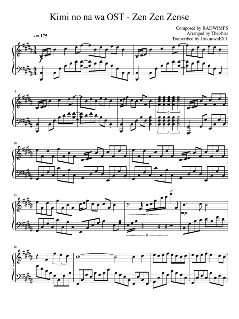 Kimi No Na Wa Zen Zen Zense Sheet Music / R/anime sings zen zen zense ( kimi no na wa.