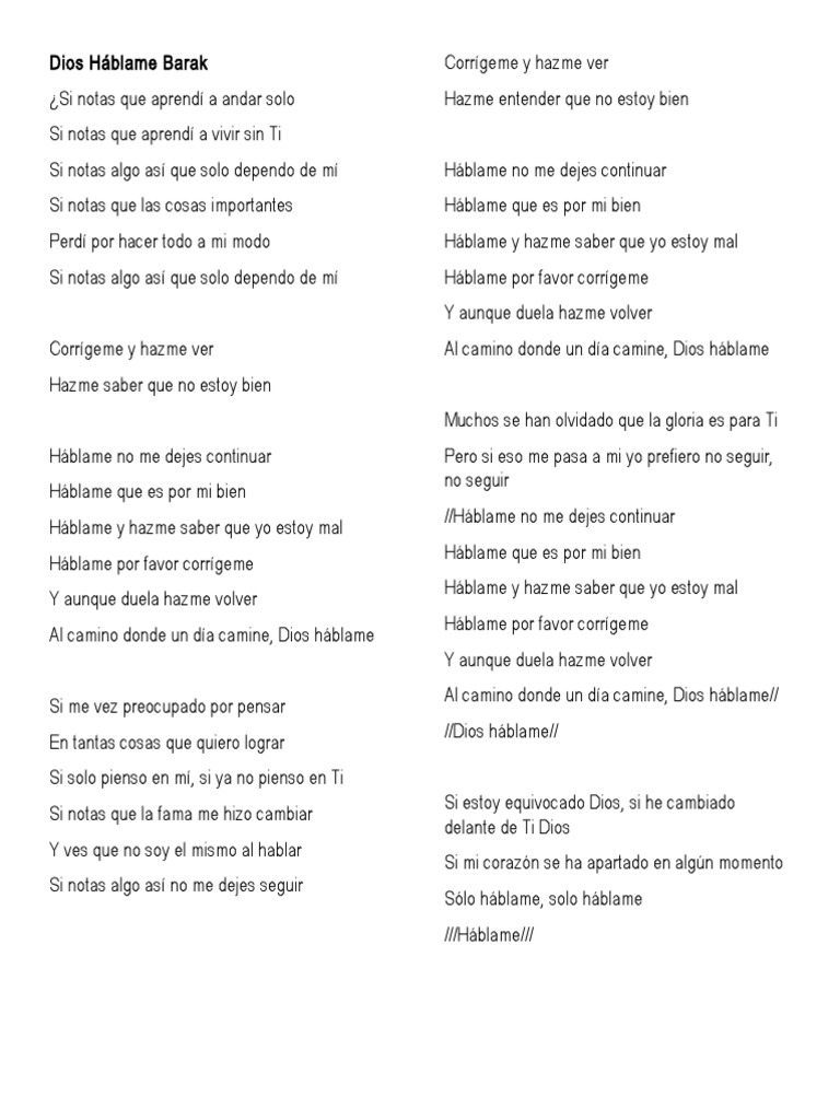 Dios Hablame Barak Generacion Sedientalyricscon Letra 2014 By Imh29 Y te pregunte háblame de ti de todos tus gustos cuántos años tienes y a que te dedicas si sales con alguien igual y con suerte te encuentro solita y dime qué opinas crees.